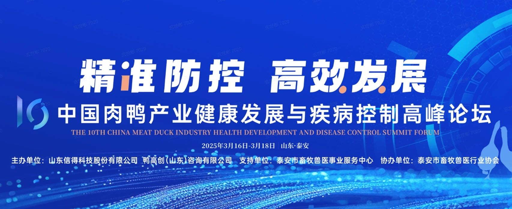 3月17日,由山東信得科技股份有限公司主辦的“第十屆中國肉鴨產業健康發展與疾病控制高峰論壇”在山東泰安成功舉辦。本次會議以“精準防控,高效發展”為主題,得到泰安市畜牧獸醫事業服務中心和泰安市畜牧獸醫行業協會的大力支持和協助。信得科技李朝陽董事長、益客集團田立余董事長、中國農科院北京畜牧獸醫研究所唐熠教授、鴨高創總經理許毅博士、益客集團技術總監劉海濤、信得科技產品經理田家軍、和康源集團技術總監汪建華、中新食品禽BU技術總監吳海洋、信得科技研發中心總監宋慶慶博士出席會議并作主題報告,來自全國各地的600余位肉鴨產業鏈從業者、行業專家及企業家出席會議。